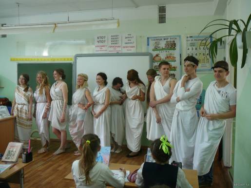 Последний учебный день. Первый урок. Звонок. Жду свой 11 класс на литературу. Чувствовала, что они готовят что-то необычное. Вдруг забегает коллега: "Вы посмотрите в окно: Ваши все в белом!" Значит, всё-таки Боги, о чём вчера с ними говорили... И вот они заходят... Нет, грациозно и торжественно они появляются в кабинете: Боги, сошедшие с Олимпа! Именно такими мои дети решили сегодня появиться в Храме Науки, в котором провели 11 лет. Гордые, торжественные и весёлые одновременно. Вместе мы прошли по школьным кабинетам, выразили свою благодарность тем учителям, кто ежедневно "сеял разумное, доброе, вечное". А потом - репетиция. Завтра Последний Звонок. Что ждёт их после него? Но сегодня ещё хочется показать, ЧТО они могут! Кабинет готов принять их на последний классный час, где я буду ждать своих "богов", чтобы сказать им: "В добрый путь, дорогие мои!"