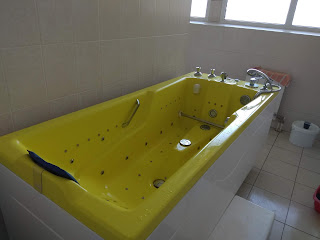 Медсестра растворяет этот объем нефти под струей воды, пускаемой для гидромассажа.