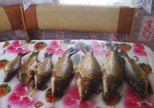 А мы вчера наловили маленьких карасиков 24 штуки. Ну и что, что мелкие! Зато едятся как конфетки! Да еще и почти каждая рыбешка с икрой (лов не запрещен! В пруд запустили малька!), из которой нажарила икряных блинчиков. Смакота!