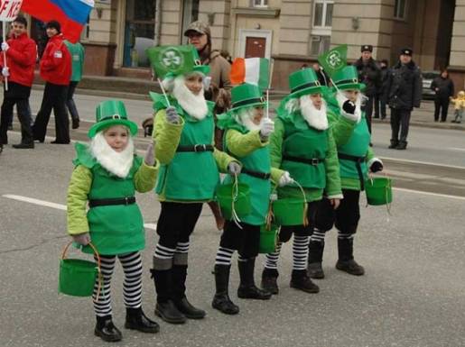 Во многих городах мира празднуют день святого Патрика. Пришел он и в Россию, в Москву. Люди одеты в зеленое (национальный цвет Ирландии), они заметны повсюду. В петлицу в этот день вдевают клевер, символ Ирландии и удачи.