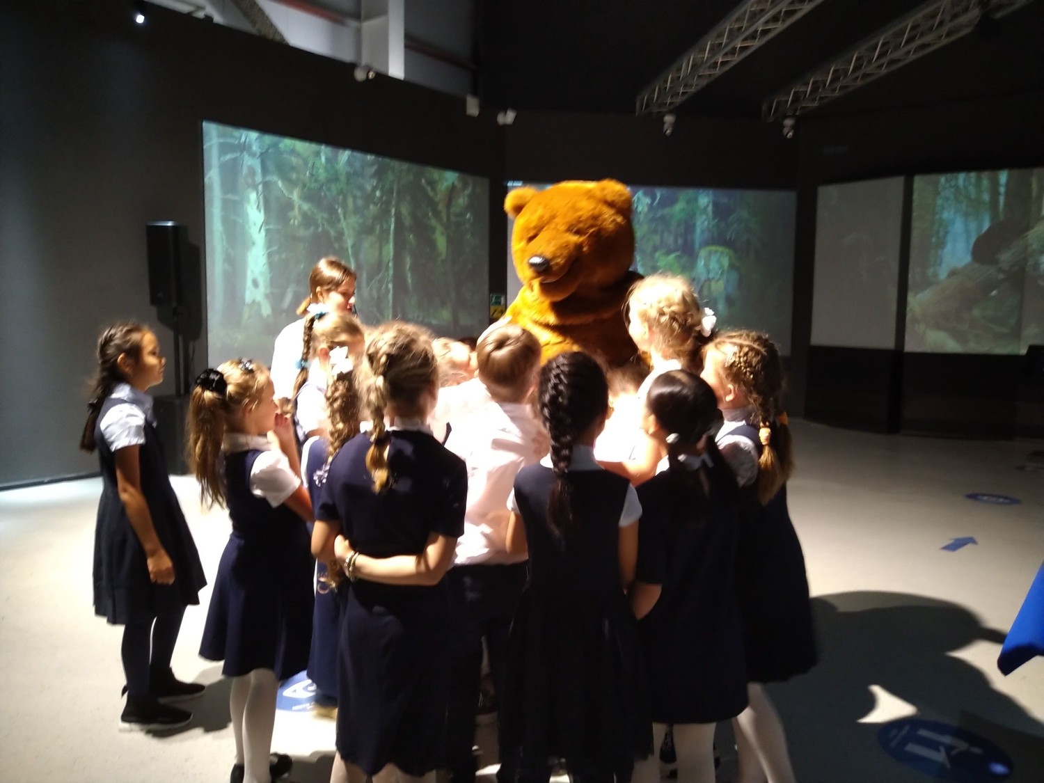 Поиграли с музейным персонажем Медведем – яркой и очень милой ростовой куклой.