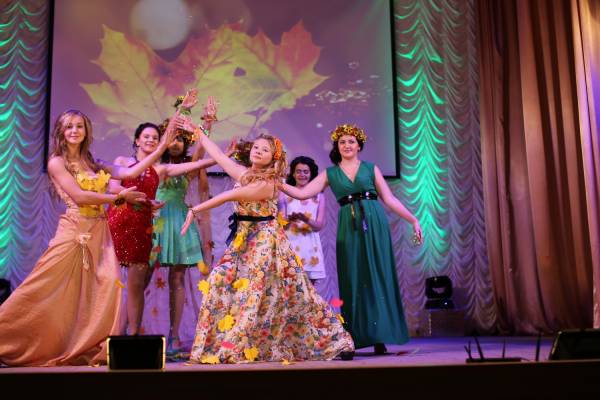 Кульминацией программы был последний конкурс. Девушки в блистательных нарядах дефилировали по сцене в образах Королевы Осени, после чего, сойдясь в очередном «хороводе», устроили фейерверк из живых и бумажных листьев и мишуры.