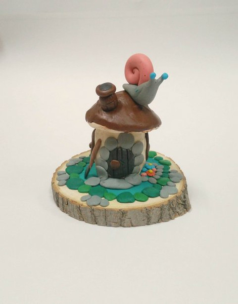 Лепка из пластилина с применением природных материалов. Для основания под домик был взят спил дерева. Домик решили сделать в виде грибочка. Сначала мы вылепили на пенечке полянку и огородик для домика. Затем и сам домик. Первым делом было сделано основание домика. то есть ножка и шляпка грибочка. затем украсили ножку гриба дверью и окошечком(так удобнее, пока нет крыши). Затем на крыше - шляпке сделали трубу и чердак. Соединили вместе и установили на пеньке. Затем добавили различные детали и вот что получилось....