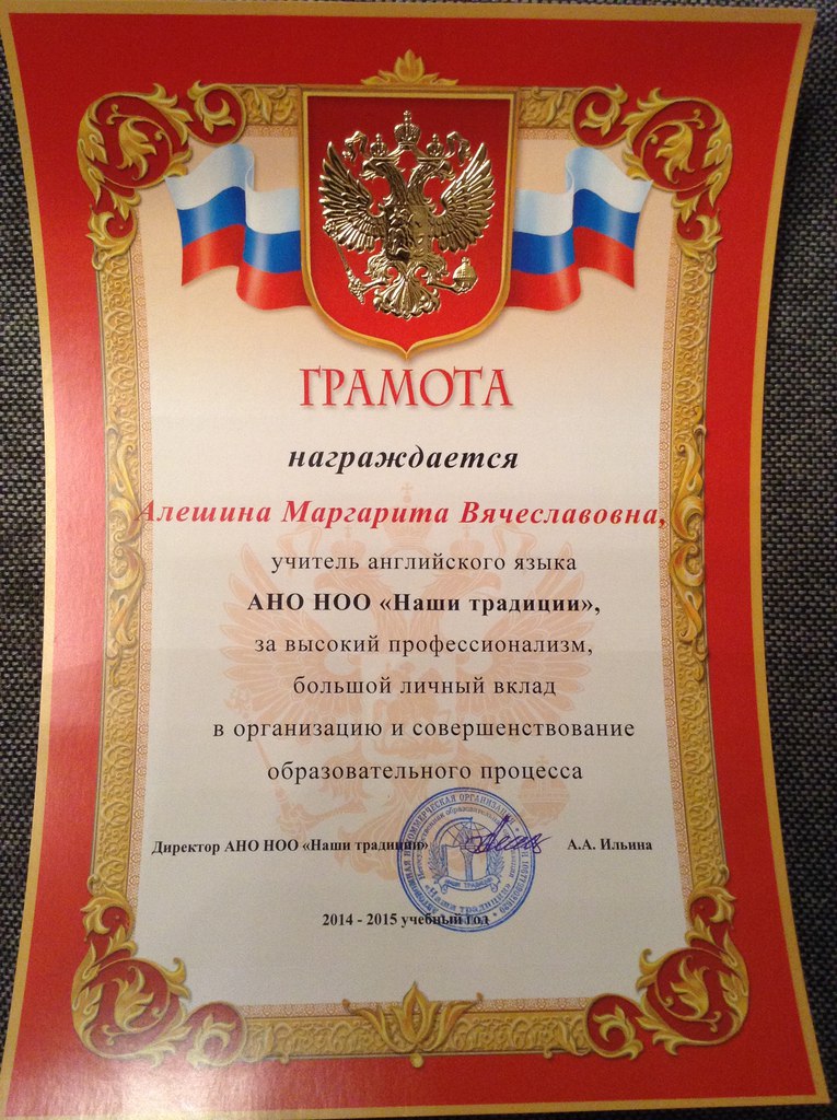 Этот год (имею ввиду календарный) для меня выдался трудным. Но все-таки не жалею ни о чем. Долго администрация школы мне обещала награду, но вот я ее дождалась.
