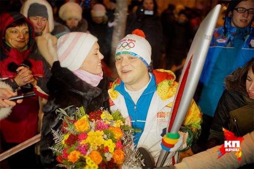 Символ Всемирных зимних игр был доставлен 14.12. в Екатеринбург утром. Его встречали тысячи жителей города. Нынешний маршрут эстафеты поставил рекорд протяжённости - более 50 километров. Старт был дан на центральной площади Екатеринбурга. Создавалось впечатление, что больше половины жителей Екатеринбурга вышли на улицы, чтобы поприветствовать факелоносцев и посмотреть на легендарный огонь. Ну, а под конец эстафеты балом стала править романтика. Впервые за всю историю эстафеты Олимпийского огня участник сделал предложение руки и сердца своей девушке. Это произошло во время третьего круга. 29-летний факелоносец Леонид Скобелин сделал предложение своей девушке Надежде. Пробежав положенные 200 метров, он остановился и позвал ее из толпы. - Надюша, любимая, где ты? Подойди ко мне! А когда удивленная девушка вышла, Леонид произнес те самые долгожданные слова. - Наденька, солнышко, я тебя очень сильно люблю. Ты сделала меня счастливым человеком. Год назад ты зажгла в моем сердце огонь, и я хочу, чтобы этот огонь горел вечно. Я хочу пройти эту жизнь рука об руку с тобой, любимая. Надюшь, любовь моя, ты согласна стать моей женой? Девушка с замиранием сердца тихо прошептала ответ. - Я не слышу…- улыбаясь сказал парень. Толпа замерла. И в этот момент девушка громко крикнула: «Я согласна!» Радости молодого человека не было предела. - Она сказала «ДА»! Сочи! Огонь! Я самый счастливый человек на Земле! После Надежда со слезами счастья на глазах призналась, что для нее все, что произошло стало полной неожиданностью. - Я просто пришла поболеть за своего любимого. А сейчас… Это непередаваемые ощущения. Я рада, я счастлива, я его очень люблю. Он самый лучший в мире человек. Кстати колечко село на пальчик девушки, как влитое. Правда, насладиться обществом друг друга молодоженам не дали. Под сладкие крики «Горько!» эстафета продолжилась.