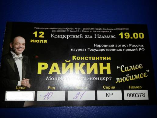 12 июля в нашей столице, городе Майкопе мне посчастливилось побывать на моноспектакле-концерте "Самое любимое" народного артиста России, лауреата Государственной премии РФ Константина Райкина.