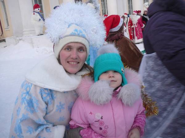 А вы верите в деда Мороза? Почему-то очень хочется, чтобы он существовал. А много дедов Морозов когда-нибудь вы видели? Мне посчастливилось даже пообщаться с ними! Дело в том, что все деды Морозы собрались у нас 30 декабря и устроили шествие по городу, несмотря на крепчающий с каждым часом мороз. Проезжая мимо центра культуры, мы увидели, как они, собрав вокруг себя народ, водили хоровод. С нами ехала шестилетняя дочка племянницы, мы решили показать ей тех, кто приносит чудо! Сначала Ульяна испугалась такого количества дедов Морозов, но к нам подошла Снегурочка (моя бывшая ученица Оля) и позвала с собой в хоровод.