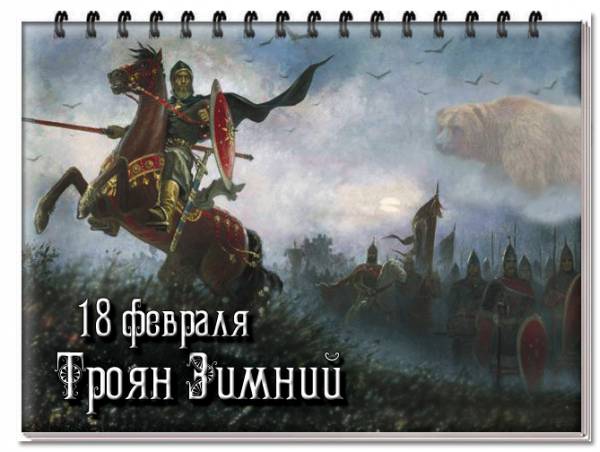 В школе проводим месячник Защитника Отечества. Готовимся к смотру строя и песни с детьми, на каждом классном часе говорим о полях ратной славы России. А вот сегодня нашла ещё информацию об одном из славянских праздников, который называется Троян Зимний. Этот праздник особо почитали древние славяне как день Воинской Славы, как память о доблестных воинах, наших предках, которые с честью защищали Русь от нашествия Римских войск и бились насмерть у Трояного вала 18 февраля около 101 года нашей эры. Ещё известно, что этот праздник назывался когда-то «Стрибожьи внуки». Вот так переплелась история: древняя и современная. Как и много веков назад, мы славим героев именно в феврале. В этот день предки наши поминали героев, также было принято совершить что-то героическое.