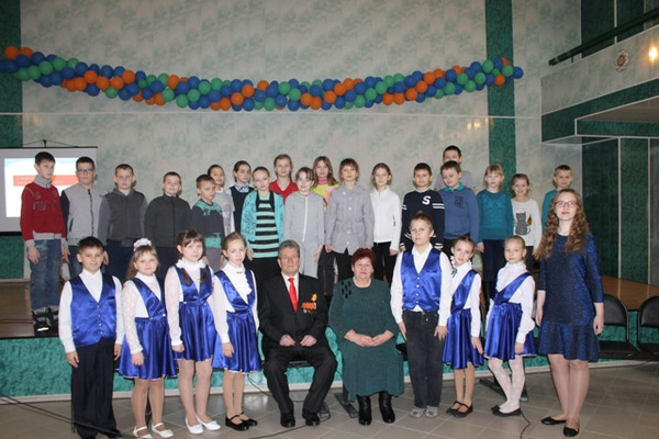 О своем военном детстве поведали дети войны: Ягодкин Леонид Андреевич и Ягодкина Валентина Михайловна. Они рассказали о том, что в годы войны они находились в лагере за колючей проволокой. На глазах Валентины Михайловны был застрелен ее десятилетний брат. Ее выступление дети слушали со слезами на глазах. Воспитанники студии "Сувенир" вручили гостям подарки, а воспитанники вокальной студии "5 баллов" исполнили патриотические песни и стихи.