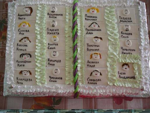 Елена Владимировна, как же жаль выпускать своих учеников! Подружились, узнали друг о друге много секретов (некоторые секреты открывались Вам, а не родителям!), а теперь - расставание... Очень красивое стихотворение! А вот съесть такой именной торт, по-моему, очень жалко... Каждый ел свой именной кусок?