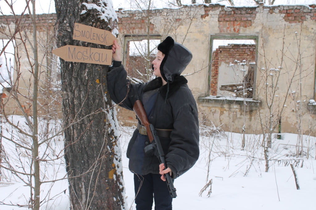 Мы подбирали образы по-разному. Лиза делала проект по теме "Имя-судьба. Образ Лизы в литературе 19 века". Вот мы и решили её сфотографировать в этом образе, да ещё и с её русской косой. У развалин дома так и просился на фото юный партизан. Мы очень любим творчество Пушкина, а в костюмерной у нас много бальных платьев - получились Марья Кирилловна и царица.