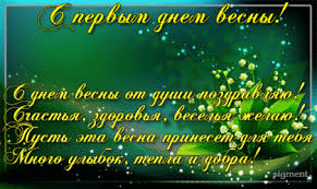 С первым днём весны я поздравляю, Благополучия, цветения вам желаю!
