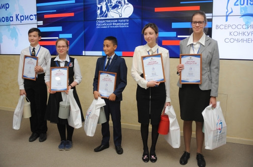 В Общественной палате РФ состоялась торжественная церемония подведения итогов Всероссийского конкурса сочинений, в которой приняли участие авторы 100 лучших творческих работ – школьники 4–11-х классов и студенты СПО из разных регионов нашей страны. Победитель конкурса «Учитель года России – 2019» Лариса Арачашвили отметила, что за пять лет существования конкурса в нем приняли участие почти 4 млн человек. В финальном этапе жюри оценивало 366 работ.